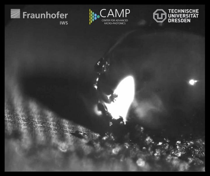 For several years, scientists at TU Dresden and Fraunhofer IWS have been developing functionalised surfaces by means of laser-based manufacturing processes. Now, they have created a periodic surface structure that is not only water and ice repellent, but also remove dirt particles solely by rolling water drops. In this context, they particularly focussed on the material aluminium. "This material is used in many industrial branches - either in the automotive sector, aircraft construction or the food industry. The use of aggressive cleaning chemicals is particularly critical in food industry, as we naturally do not want to bring these chemicals in contact with our food," emphasises Stephan Milles, PhD student at Technische Universität Dresden. In particular, the Dresden scientists studied the function of self-cleaning laser-structured aluminium. A special camera was used to analyse the self-cleaning effect of the aluminium surfaces and filmed the process at 12,500 frames per second. Thomas Kuntze, scientist in the Microtechnology Technology Field at Fraunhofer IWS, explains: "This way we can perfectly see how a water drop can remove the dirt from the aluminium surface. This method is also suitable for understanding other processes, such as laser cutting and welding or additive manufacturing".
