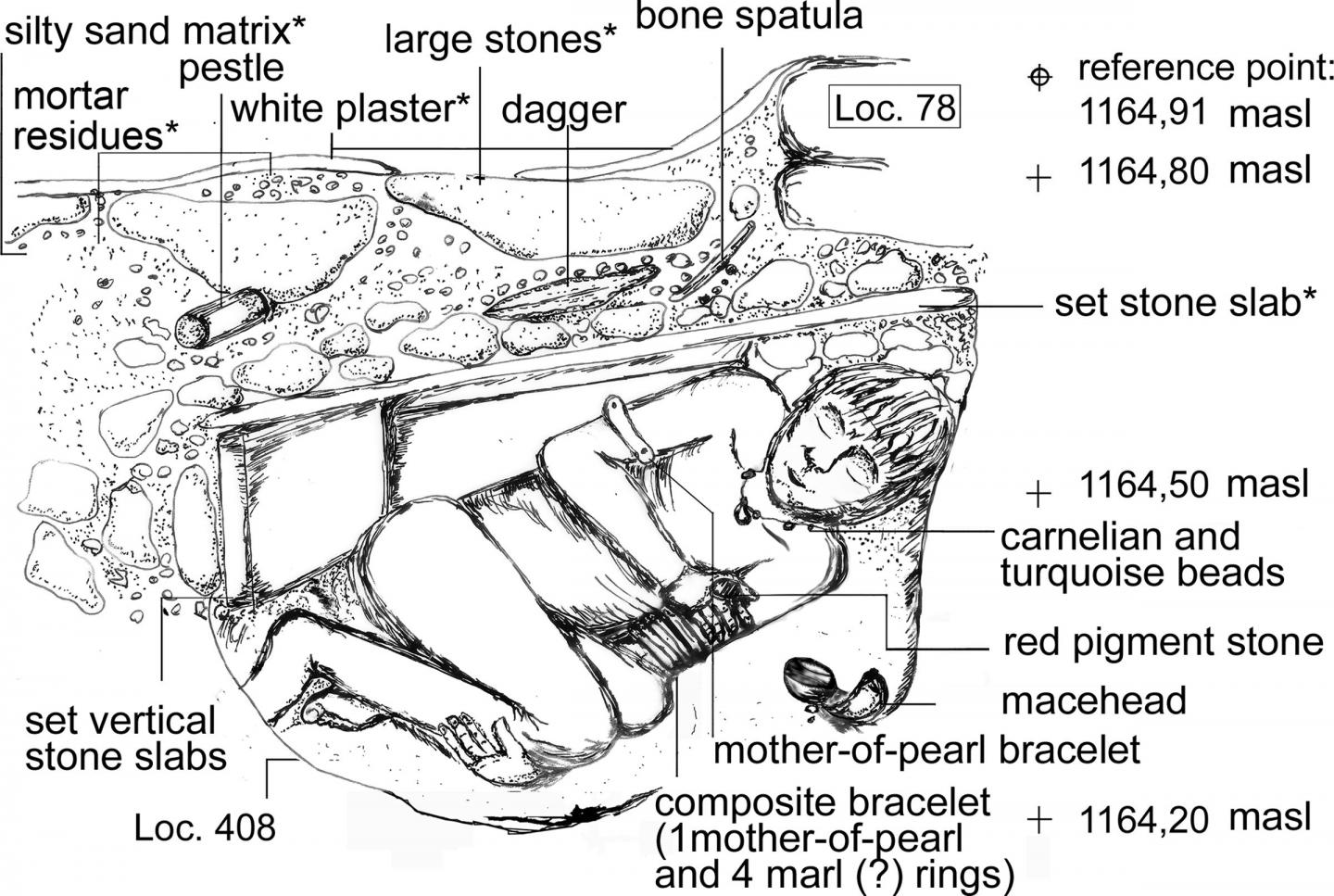 Elaborate burial sites can provide insight to the development of socio-political hierarchies in early human communities, according to a study released August 28, 2019 in the open-access journal PLOS ONE by an international team of archaeologists, anthropologists and neuroscientists of the Ba'ja Neolithic Project hosted at the Free University of Berlin in cooperation with the Department of Antiquities of Jordan. The interdisciplinary investigations on the 9000-year-old extraordinary grave studied here gives new evidence on emerging leadership in the first farming villages of the Near East.