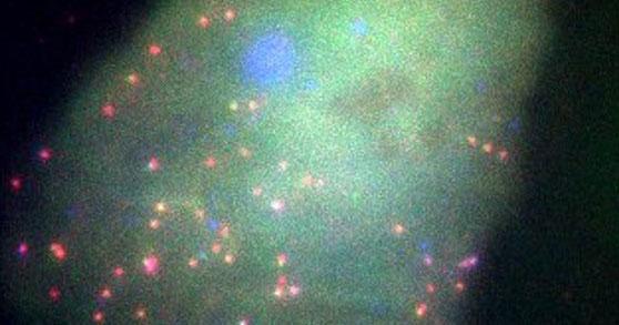 image: A single cell that shows different types of translation in different colors, using a color-coded biosensor.