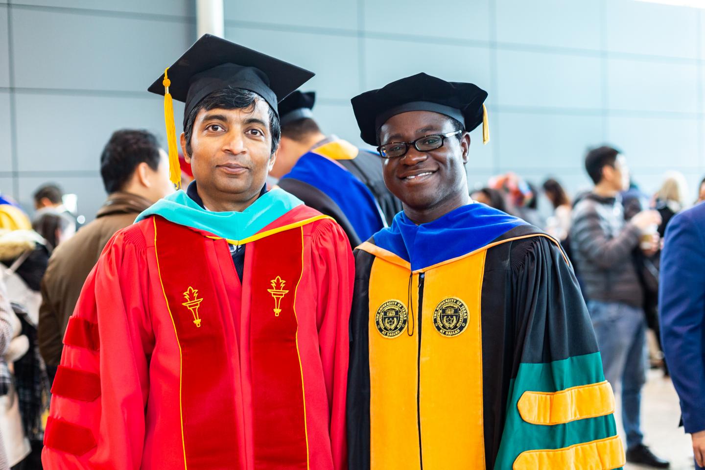 image: Dr. Latifur Khan (left), professor of computer science, and Gbadebo Ayoade MS'14, PhD'19, shown at Ayoade's doctoral hooding ceremony in December, are co-authors of a study that promotes the benefits of crook-sourcing.
