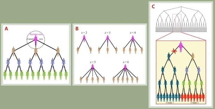 “We considered that all those who come into contact with each other form a network, and that contact between infected and non-infected people is likely to spread the virus. For example, imagine the first infected person [patient zero] is in contact with other people and fails to take proper precautions [social distancing, face covering, hand hygiene etc]. The members of this group who are infected by the virus may transmit it to relatives, friends and other contacts, and these, in turn, may spread it to others, forming a ‘contact network’ that corresponds to a Bethe lattice in condensed matter physics,” Souza said.