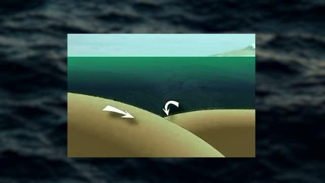 Most large tsunamis are triggered by earthquakes along thrust faults, where one piece of crust is shoving its way over the top of another. Motion along such a fault creates a large vertical displacement, which, when the fault is under water, generates massive waves.