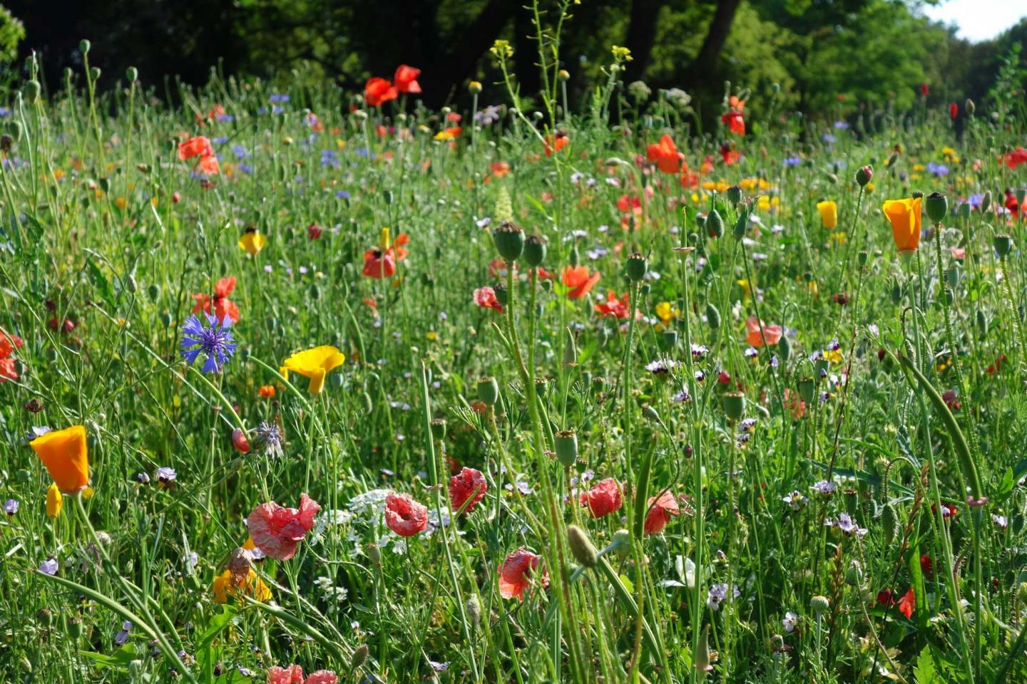 image: Flower-rich meadow at a park in Leipzig, Germany.