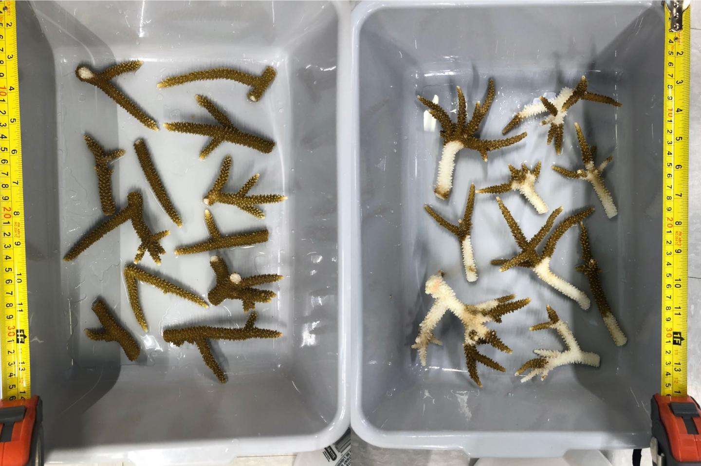 image: Healthy and diseased Acropora cervicornis (OSU College of Science)