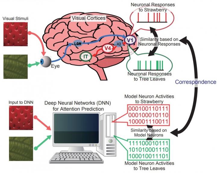 A research group led by Nobuhiko Wagatsuma, Lecturer at the Faculty of Science, Toho University, Akinori Hidaka, Associate Professor at the Faculty of Science and Engineering, Tokyo Denki University, and Hiroshi Tamura, Associate Professor at the Graduate School of Frontiers Biosciences, Osaka University, found that the characteristics of responses in DNNs for predicting the attention to the most important location in images were consistent with those of the neural representation in the primary visual cortex (V1) of primates. The discovery was made possible by applying the analysis method designed for comparing the characteristics of the neuronal activity in monkeys with that in humans to DNNs.