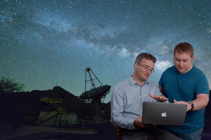 image: UD Professor Jamie Holder (left) and doctoral student Tyler Williamson have been studying gamma rays with the help of the VERITAS telescopes located at the Fred Lawrence Whipple Observatory in Amado, Arizona.