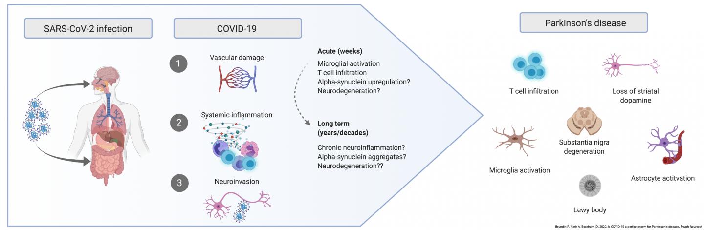 "As we continue to grapple with the COVID-19 pandemic today, we also must consider its implications for the future," Brundin said. "Evidence is mounting that the side effects of COVID-19 infection, such as inflammation and damage to the vascular system, could lay the foundation for development of Parkinson's disease. COVID-19 is clearly a major and ongoing public health threat, but the consequences of infection may end up being with us for years and decades to come."