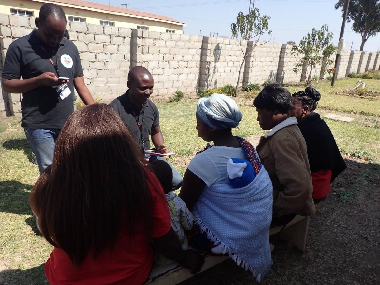 image: Research assistants administering the health-related quality of life survey to mothers from Kabwe (Photo: Hokuto Nakata).