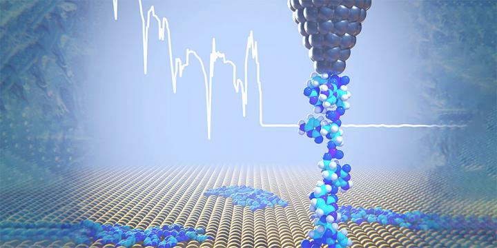 image: At low temperatures, a DNA strand is removed from the gold surface using the tip of an atomic force microscope. In the process, physical parameters such as elasticity and binding properties can be determined.