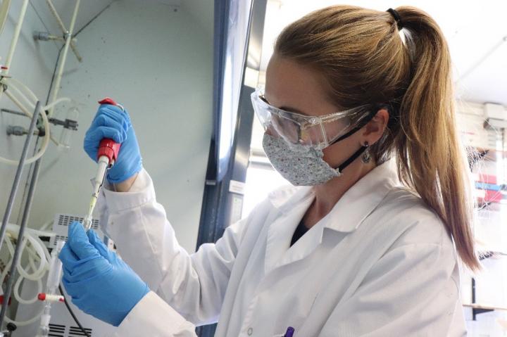 image: Lucía Tapia, author of this study, at the Institute for Advanced Chemistry of Catalonia.
