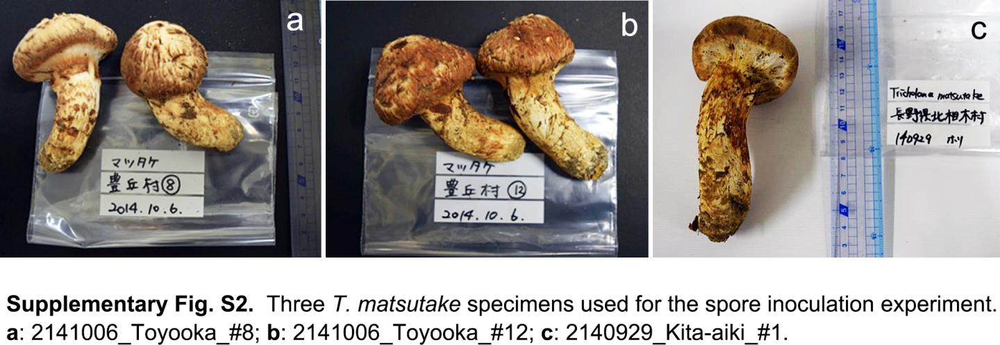 image: Three T.matsutake specimens used for the spore inoculation experiment.