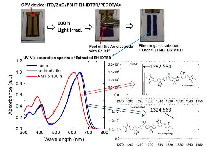 image: Analytical results and method for organic solar cell after 100 h light irradiation