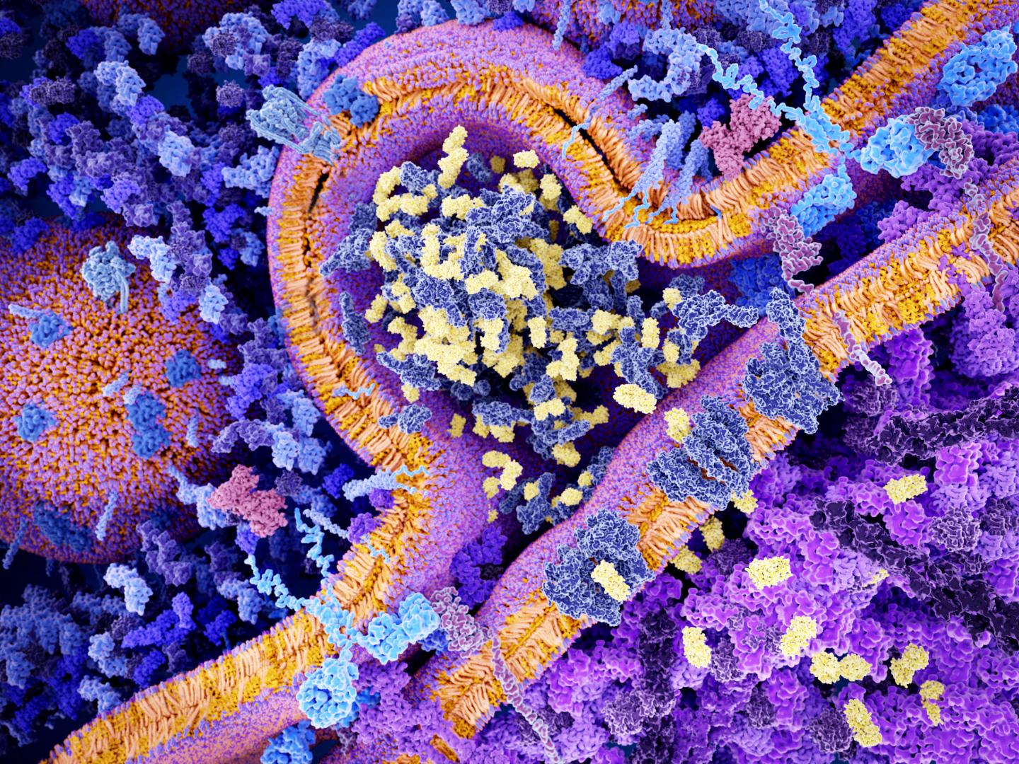 image: Chimeric antigen receptor therapy. CAR molecules (light blue) bind to CD19 molecules on a cancer cell leading to segregation of granzyme vesicles (yellow) that activate apoptosis.