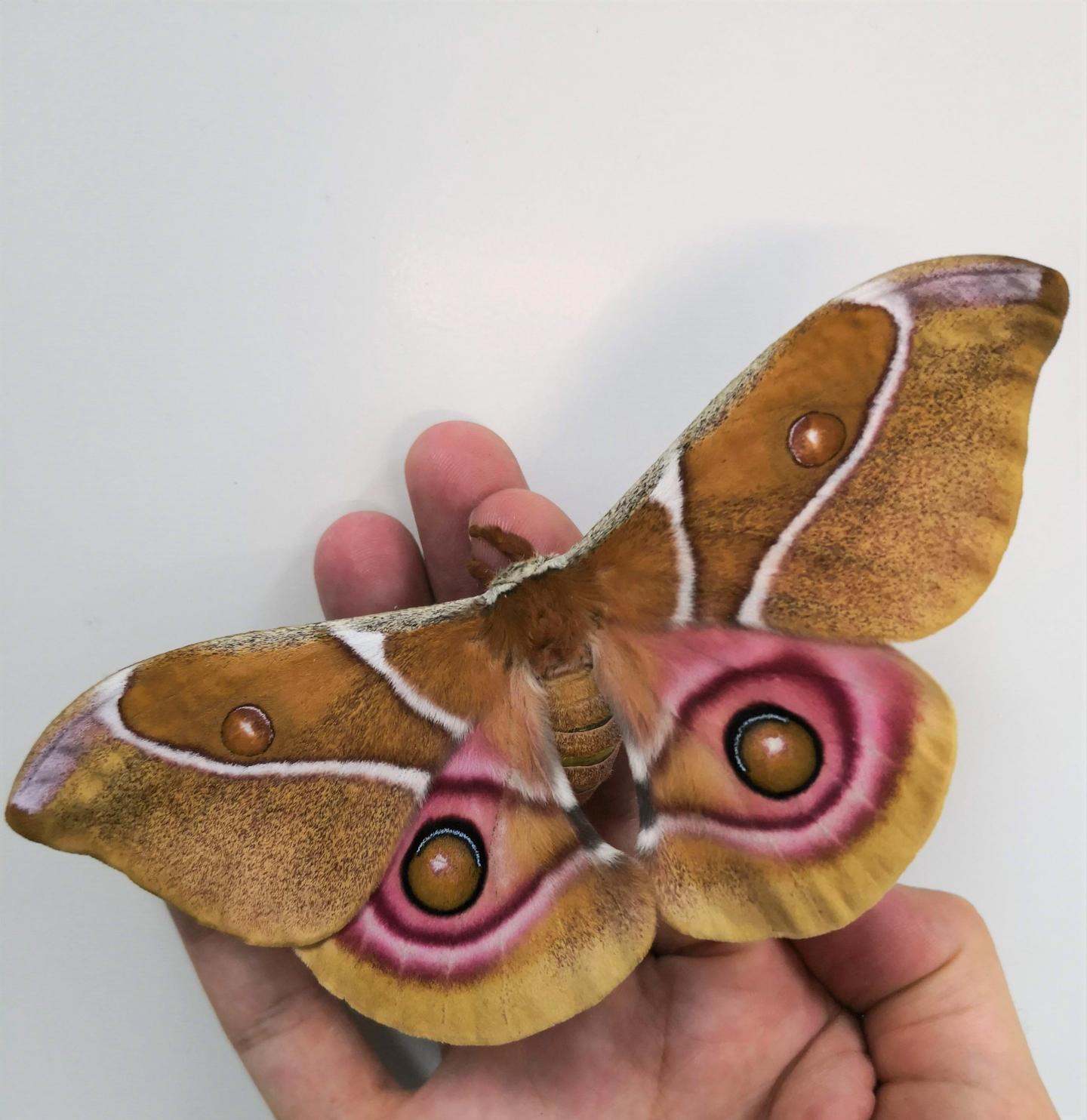 image: One of the four species used in the present study (Antherina suraka). The thorax scales on this moth can absorb up to 85% of the sound energy produced by an echolocating bat.