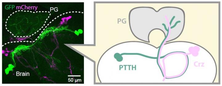 "These are striking results that show how Crz is a key molecule for the body size adjustment during the larval stage" says Professor Shimada-Niwa, a corresponding author of this study. "Our findings provide new insights into a neuronal axis that regulates growth and maturation during development."