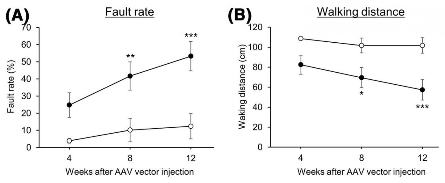 A research team from Kumamoto University, Japan has developed an animal model that reproduces motor dysfunction and cerebellar neurodegeneration similar to that in spinocerebellar ataxia (SCA) by inhibiting chaperone-mediated autophagy (CMA) in cerebellar neurons. Since CMA activity is reduced in cells expressing SCA causing proteins, CMA is expected to become a new therapeutic target for SCA—a disease that currently has no basic treatment.