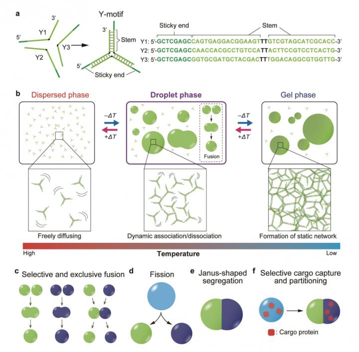 image: Changing the DNA sequence of the sticky ends in the Y-motifs allows for obtaining DNA droplets with various useful and highly designable behaviors.