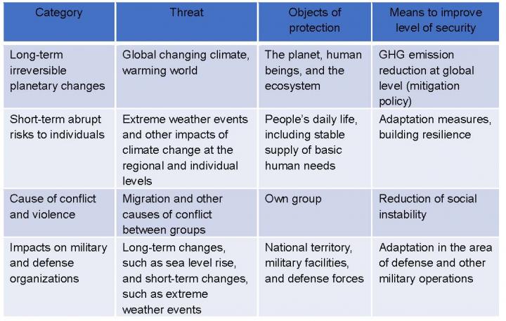 image: Summary of the four categories of climate security discourse