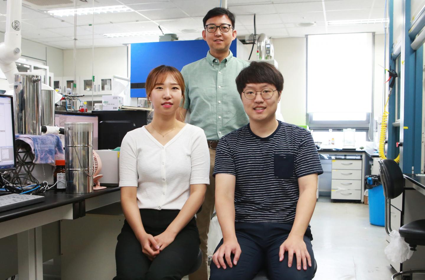 image: DGIST Professor Jaeheung Cho in the Department of Emerging Materials Science at DGIST (up), Bohee Kim, a Combined M.S-Ph.D. Program Student in the Department of Emerging Materials Science (below left), and Donghyun Jeong, a Combined M.S-Ph.D. Program Student.