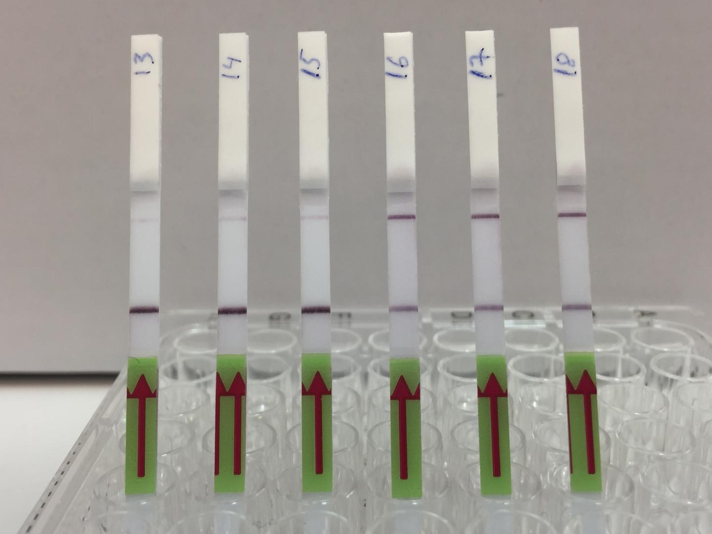 For very low target concentrations, often a pale second line appears on the test strip, which could cause confusion. So, the team developed a smartphone app that unbiasedly analyzes pictures of the test strip and renders the final call based on the line's intensity.