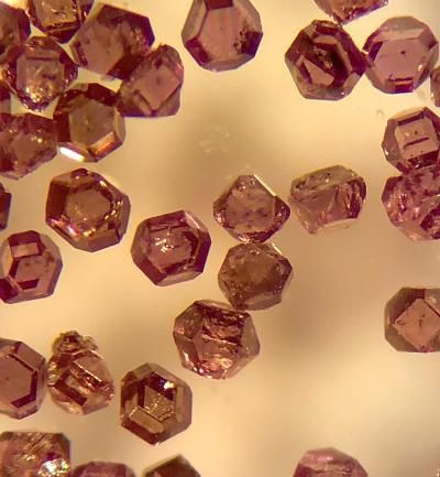 image: The microdiamonds used as biological tracers are about 200 microns across, less than one-hundredth of an inch. They fluoresce red but can also be hyperpolarized, allowing them to be detected both optically -- by fluorescence microscopy -- and by radio-frequency NMR imaging, boosting the power of both techniques.