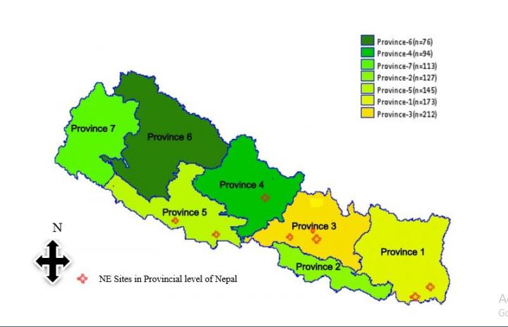 image: Location of Nutrient Expert-Rice trial sites in the Terai and mid-hills regions of Nepal.