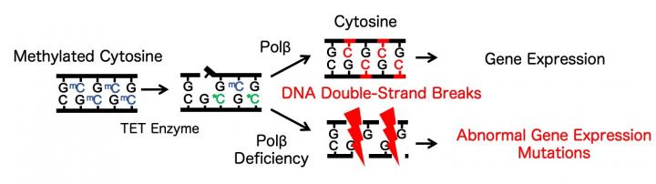 Throughout life, gene expression can be modified when certain molecules called methyl groups attach or detach themselves from DNA. During brain development, patterns of DNA methylation and demethylation can affect neurons and how they interact with each other. This in turn can affect future behavior and mental ability. However, this process appears to damage DNA. "We found that double-stranded breaks in the DNA of CA1 hippocampal neurons was related to DNA demethylation," explains Sugo. "When we prevented active demethylation, we no longer saw the increased number of double-stranded breaks, even though Polβ remained absent." On the flip side, purposefully initiating DNA demethylation resulted in more breaks in the DNA, thus confirming the relationship.
