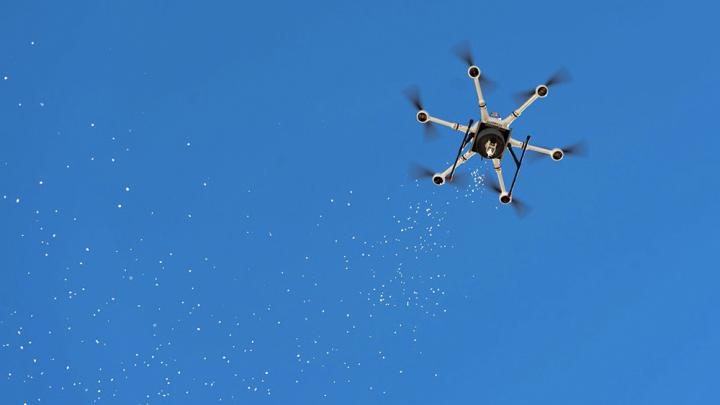 Using drones to release sterile Mexican fruit flies (Anastrepha ludens) and codling moths (Cydia pomonella) to suppress wild populations of the pests—a modern improvement on the classic sterile insect technique.