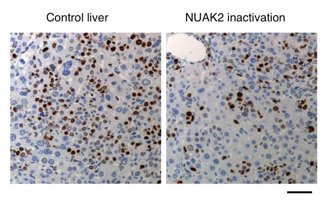 image: A small molecule that inactivates NUAK2 reduces the number of cancerous cells in the mouse liver.