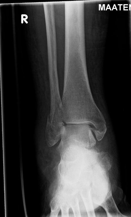 image: X-ray image of a fractured ankle.
