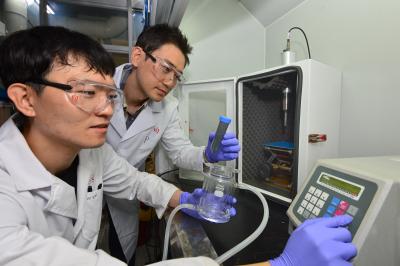 image: Researchers Jae-woo Choi and Dr. Kyung-won Jung (right-hand, first author) of KIST's Water Cycle Research Center are experimenting with removing pollutants and environmental hormones from the water simultaneously by combining newly developed eco-friendly nanocomposite catalyst with ultrasound.