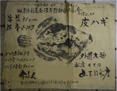 In Japan many recreational fishers have recorded their memorable catches as 'gyotaku':魚拓, which means fish impression or fish rubbing in English. 'Gyotaku' is made directly from the fish specimen and usually includes information such as sampling date and locality, the name of the fisherman, its witnesses, the fish species (frequently its local name), and fishing tackle used. This art has existed since the last Edo period. Currently, the oldest 'gyotaku' material is the collection of the Tsuruoka City Library made in 1839.