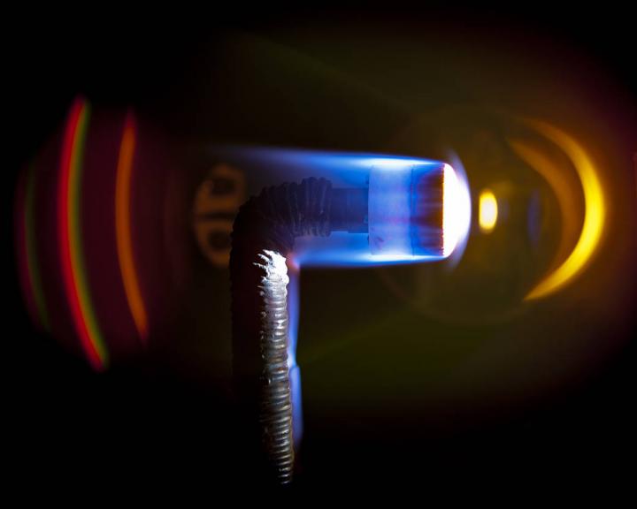 "We may have more of what's called frozen flow losses associated with this material than with the Teflon," Rovey said. "The high-performance electric propellant stores more energy internally in the gas. For propulsion, we want that energy to go toward accelerating the gas. We don't want to put a lot of energy into these internal modes. Yes, it makes really hot gas, but we want high-speed gas.