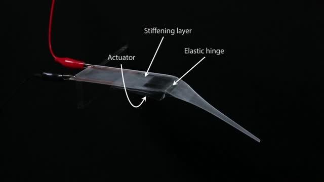 They built a flexible pouch made of thin plastic films (either polyester or polypropylene will do) which they filled with a liquid dielectric--a vegetable-based oil. They then placed electrodes on each side of the pouch. These liquid-filled pockets serve as actuators, in which the hydraulic power is generated through electrostatic forces. The pouch is attached to a rotary joint. When a high voltage is applied between the electrodes, the electrostatic forces cause the liquid dielectric to shift inside the pouch and the joint to flex. SES joints are capable of rotating up to 70 degrees, causing high torques, and can easily restore back to the starting position.