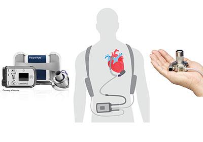 image: Left ventricular devices, such as these made by Abbott and Medtronic, can help people with advanced heart failure live more active lives.