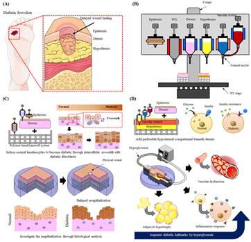 (C) Modeling diabetic epidermis through intercellular interaction between diabetic human dermal fibroblasts and normal human epidermal keratinocytes, and a wounded skin model with delayed reepithelization.