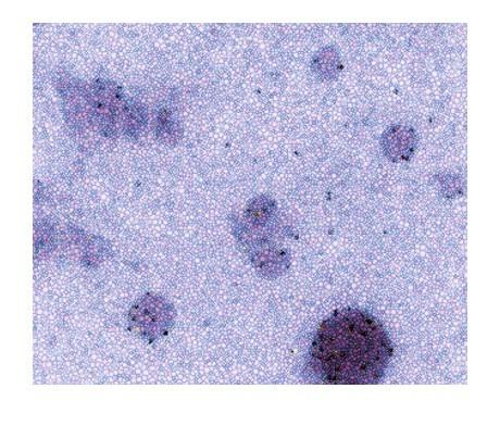 image: In this photo taken with an electron microscope, the spheres are exosomes and the black dots are gold labels.