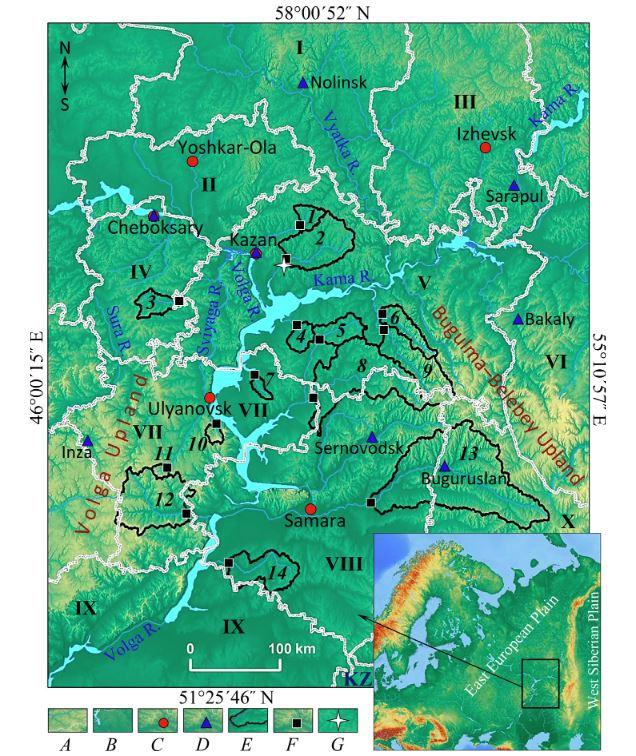 In the paper, a generalized representation of the development trends of these processes over the past 50 years was made, based mostly on the analysis of the sediment that moves with river waters. The advantage of using long-term series of river sediment yield for research is that they are an integral indicator of the change in time of both soil and gully erosion processes. Hence, it is better for assessing trends on a regional scale. Additionally, the main trends in seasonal river water flow and their relationship with river sediment yield dynamics were identified. Information on river water flow and sediment yield is provided the Federal Service for Hydrometeorology and Environmental Monitoring of the Russian Federation. Long-term data from hydrological stations of 14 small and medium-sized rivers (the basin areas are from 237 to 12,000 km2) of the Middle Volga Region (from the Republic of Tatarstan and Chuvash Republic in the north to the Samara Oblast and Orenburg Oblast in the south) were analyzed. In one of the river basins (the Myosha River basin, Tatarstan) in 2016, field studies were also carried out in one of the small and ploughed catchments, in order to use it as an example to assess the erosion dynamics in the upper links of the river network. Their results were partially included in the study.