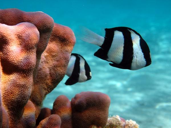 A third factor in the escape response was the location of a safe place to shelter, offered by a mounding coral alongside the experimental area. The initial response to the stimulus is to quickly turn away from the threat, but almost immediately the fish then began turning toward the shelter and swam directly toward it.