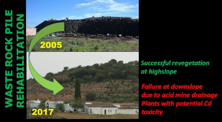 The Cabeza de los Gatos waste rock pile, left from mining activities in the town of Tharsis (Huelva), underwent a rehabilitation process consisting of remodelling the slope of the pile, applying liming materials and then a layer of soil. Finally, trees and shrubs typical of the area were planted and a hydroseeding with a mixture of shrub and herbaceous seeds was applied. Twelve years later, a study led by researchers from IRNAS-CSIC, in collaboration with Sabina Rossini Oliva, a researcher from the University of Seville and the Environment and Water Agency of Andalusia (AMAYA), has proven the effectiveness of this sort of rehabilitation.