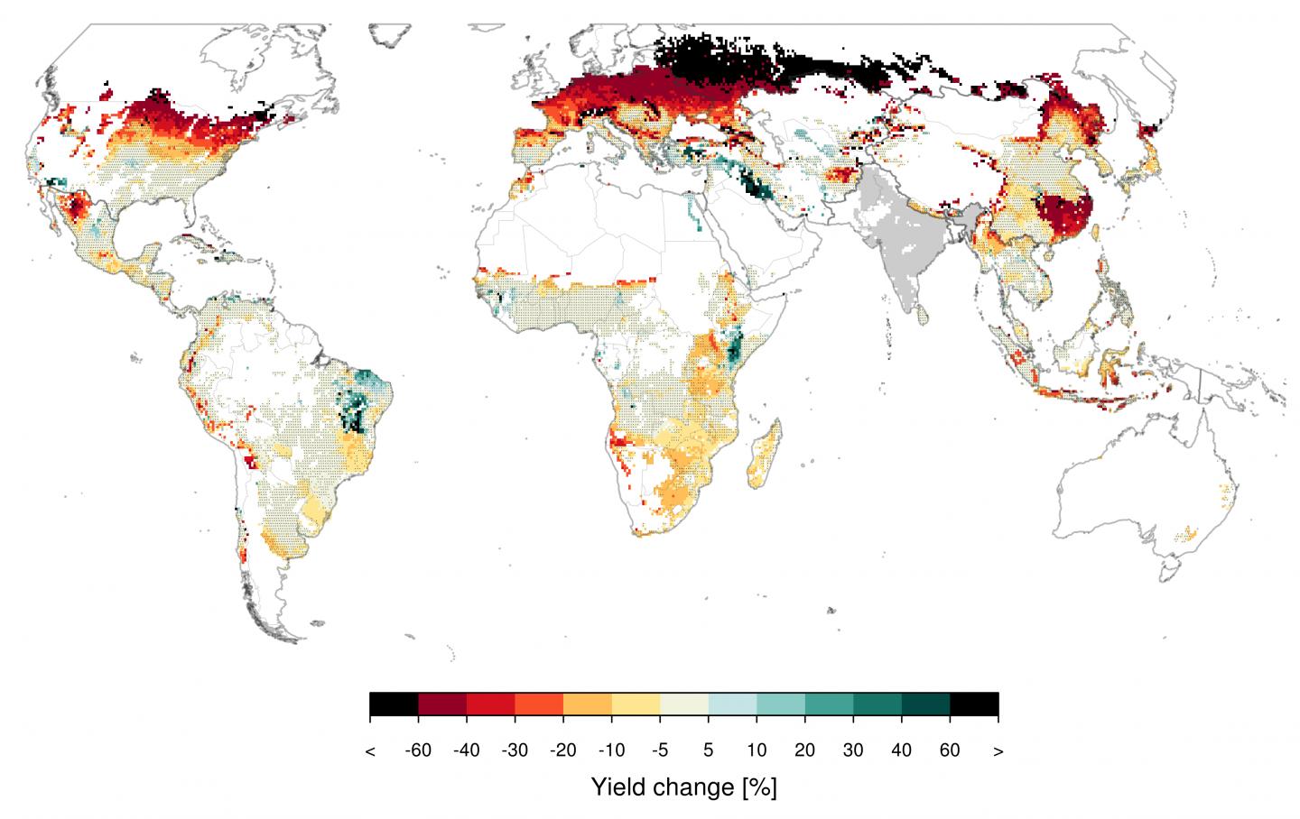 image: Average changes in maize yield in the five years following a nuclear war between Pakistan and India.