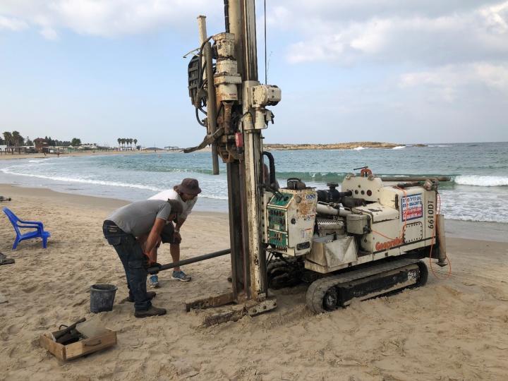 image: Geoprobe drilling rig extraction of a sediment core with evidence of a tsunami from South Bay, Tel Dor, Israel