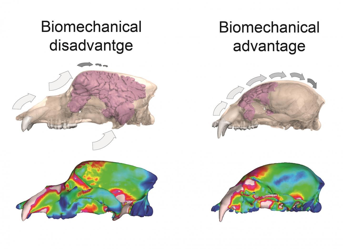"This geometrical change generated a mechanically suboptimal cranial shape, with a very low efficiency to dissipate the stress along the skull, particularly when biting with the canines or carnassials, the teeth most often used by predatory mammals," said Pérez-Ramos.
