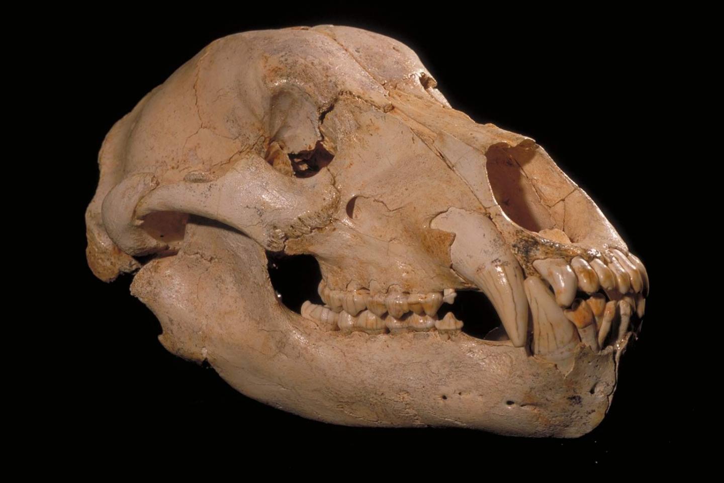 image: A complete skull and mandible of a Deninger's bear from Sima de los Huesos in Spain.