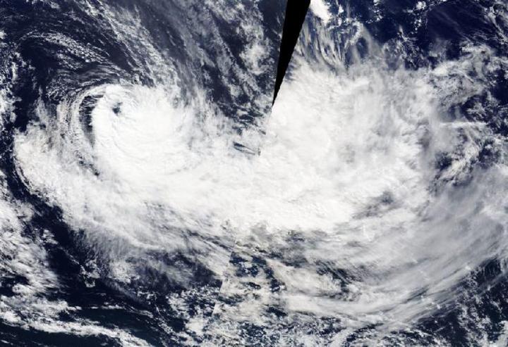 image: On April 10, the MODIS instrument that flies aboard NASA's Terra provided a visible image of extra-tropical cyclone Harold in the Southern Pacific Ocean.
