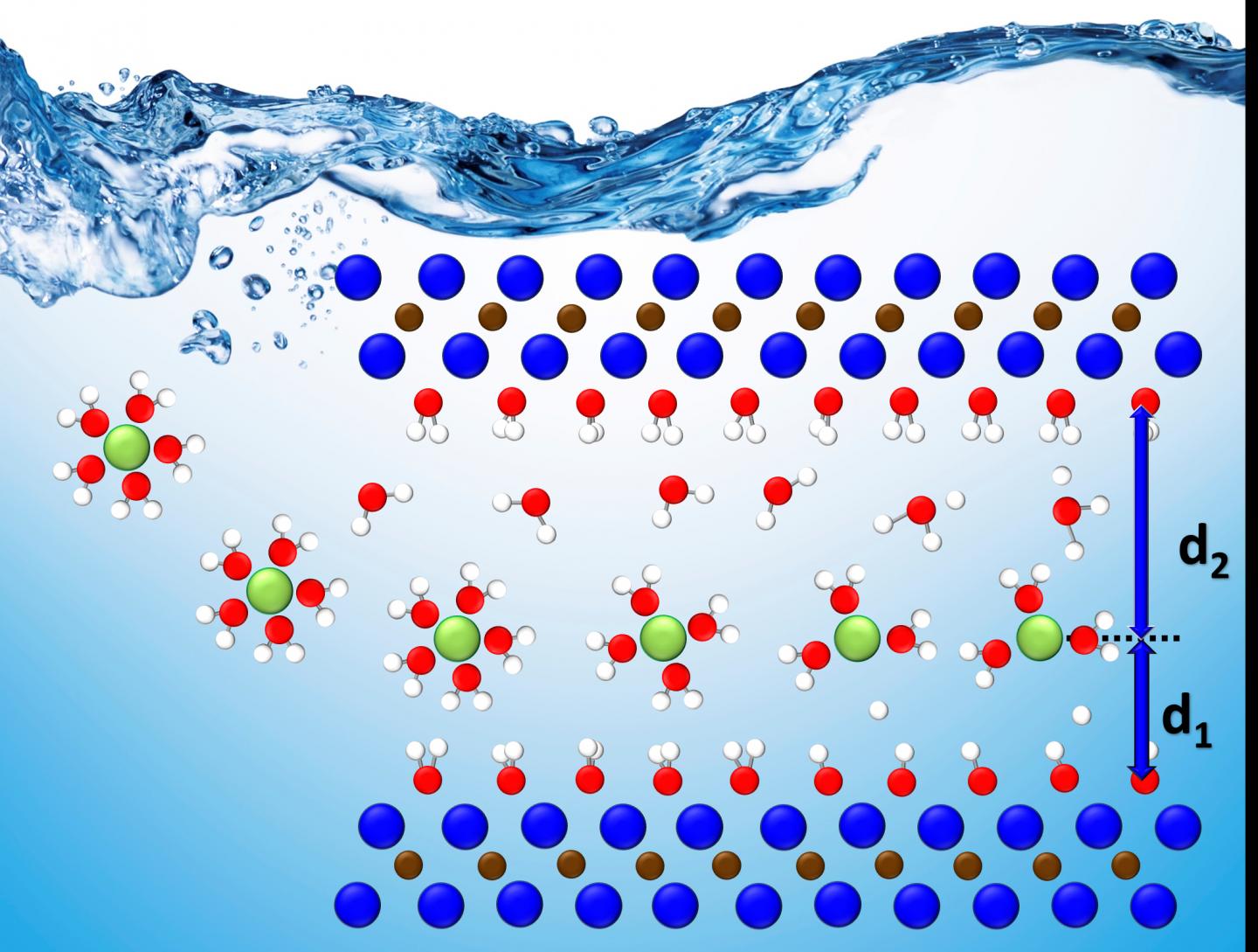 Using computational modeling, the team simulated the conditions of five different charged ions within the layers confined in an aqueous solution, or "water shell." The theoretical model is simple, but combined with experimental data, it created a baseline that provided evidence of where the ions within the MXene layers went and how they behaved in a complex environment.