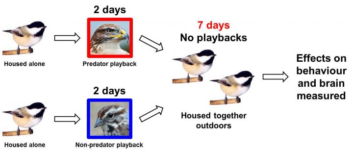 The team conducted the study on wild-caught, black-capped chickadees at Western's Advanced Facility for Avian Research (AFAR). For two days, individual birds were exposed to audio playbacks of the vocalizations of either predators or non-predators and then housed together in flocks outdoors for seven days during which time they were not exposed to any further experimental cues. After this seven-day period, enduringly fearful behaviour was quantified by measuring each individual's reaction to hearing a chickadee alarm call, and long-lasting effects on the neural circuitry of fear were assessed by measuring the levels of a genetic transcription factor in the brain (amygdala and hippocampus).