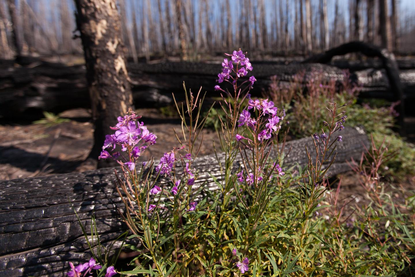 image: Fireweed (Chamerion angustifolium) blooms in Yellowstone National Park, Montana. New research highlights the importance of plant-pollinator interactions in restoring ecosystems in which natural wildfire regimes have been altered or suppressed by human activities.