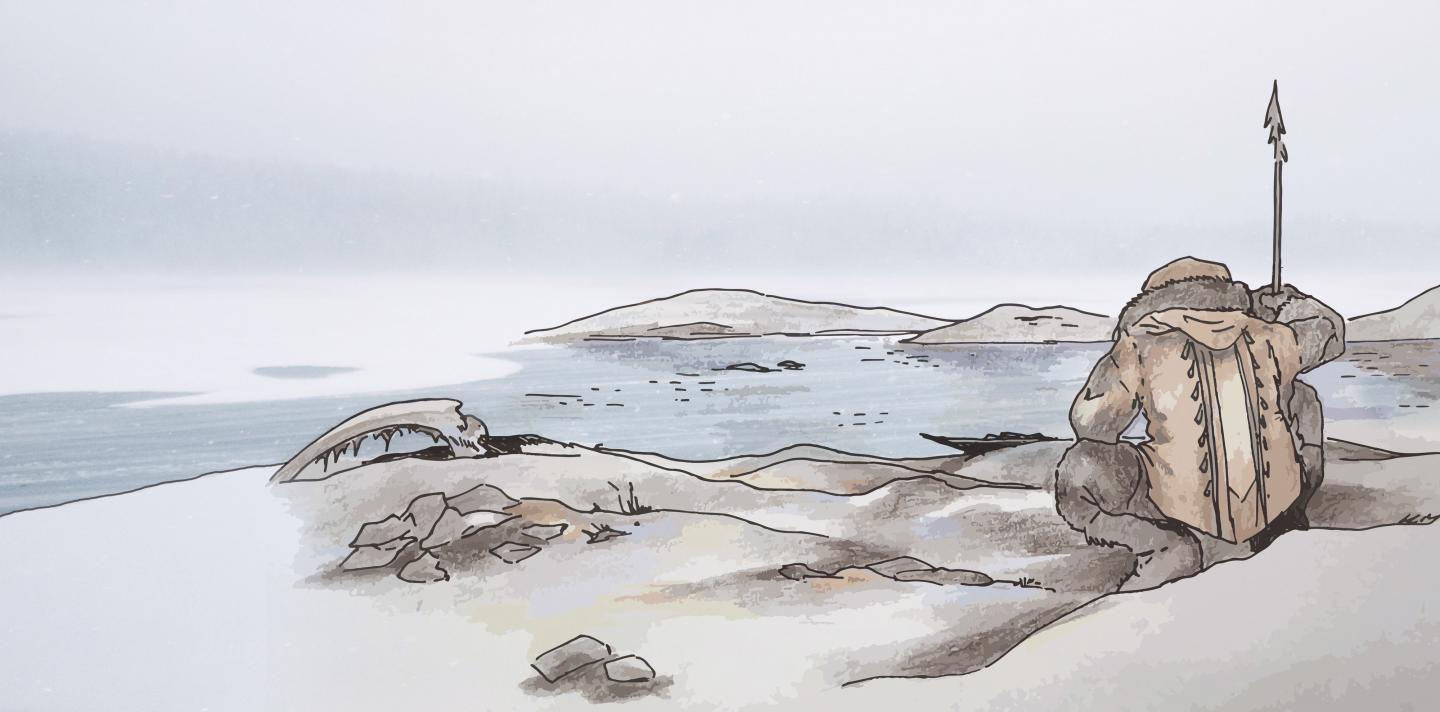image: This is an artistic impression of an ancient fisherman from Bolshoy Oleni Ostrov.