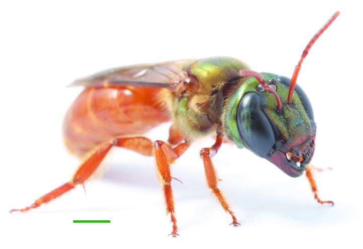 image: Megalopta genalis, a sweat bee, is able to see in very low light conditions. This study of M. genalis is the first report of the use of dorsal navigation by a flying insect.